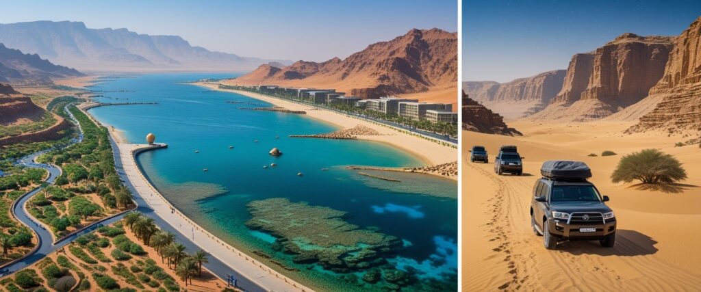 تتصدر العلا قائمة الوجهات السياحية الأكثر جذباً بفضل موقع مدائن صالح الأثري المسجل ضمن مواقع التراث العالمي لليونسكو. وتوفر العلا تجارب متنوعة تشمل جولات بالمنطاد فوق التكوينات الصخرية الخلابة ومهرجانات ثقافية على مدار العام. كما افتتحت منتجعات فاخرة مثل بانيان تري وشرعان تقدم تجربة إقامة استثنائية وسط الطبيعة الصحراوية.