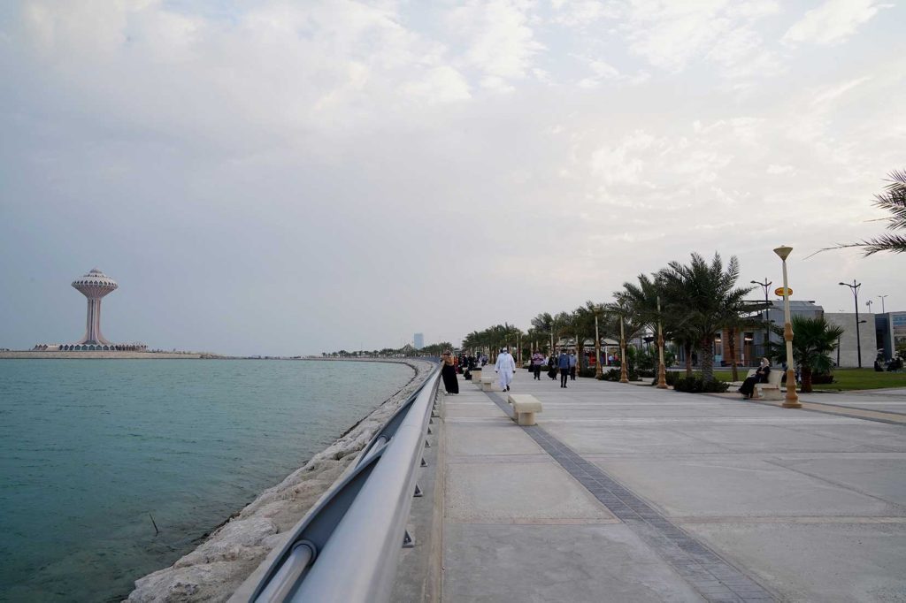 يعد كورنيش الخبر من أشهر المناطق السياحية والترفيهية التي تناسب المشي العائلي والرياضي، يتميز بمساراته الواسعة المطلة على البحر، والمنتزهات المتناثرة على طول الواجهة البحرية، بالإضافة إلى مقاهي ومطاعم توفر أجواء ممتعة بعد المشي.