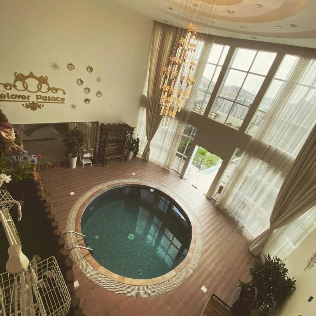 تحتوي على قاعات متعددة تناسب حفلات الخطوبة والتخرج، مع مسبحين داخلي وخارجي ومطبخ وقاعات طعام منفصلة.
