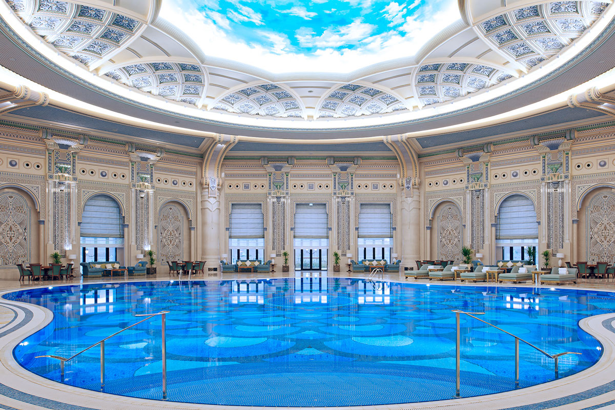يقع في قصر ملكي سابق وسط حدائق فخمة، ويمثل رمز الفخامة بديكور أنيق وثريات كريستالية، يستضيف فعاليات دولية وحكومية، ويشتهر بفطور “الأرجوان” المتنوع والفخم.