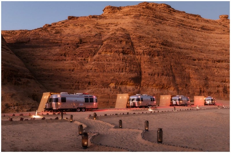 - كارافان العلا: تجربة غلافية فاخرة مع عربات “أيرستريم” المجهزة بالكامل في وادي العلا، يمكن للضيوف الاستمتاع بمرافق منتجع هابيات بالإضافة إلى الأنشطة الممتعة، الأسعار تبدأ من 1,941 ريال سعودي.