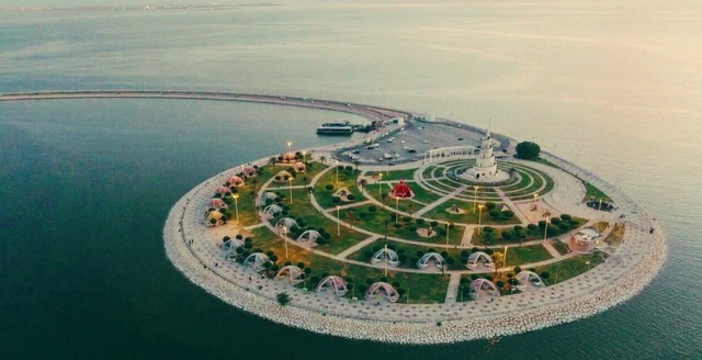 تبعد الجزيرة حوالي 2.3 كم عن شاطئ الحمراء وتغطي مساحة 7000 متر مربع، وتتميز بمرافق سياحية وخدمات متنوعة، يمكن القيام بجولة حول الجزيرة، استئجار القوارب، أو الاستمتاع بالمقاهي والمطاعم ذات الإطلالات الخلابة، مع فرصة التقاط الصور ومشاركة التجربة على مواقع التواصل الاجتماعي، كما تقع بالقرب من ملاهي عالم المغامرات.
