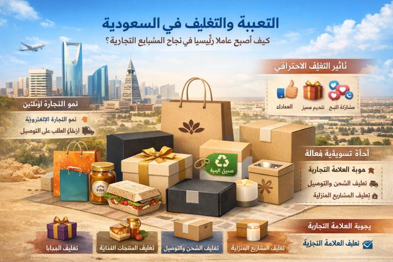 ومع النمو المتسارع في التجارة الإلكترونية داخل المملكة العربية السعودية، وازدياد عدد المشاريع الصغيرة والمتوسطة، أصبح الاهتمام بالتغليف أحد العوامل الفارقة بين مشروع ناجح وآخر لا يستطيع الاستمرار في المنافسة.