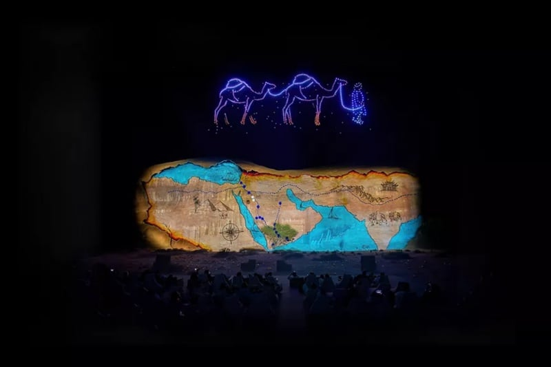 تشهد مناطق متعددة في المدينة عروضًا فنية تستوحي قصص الشعوب القديمة، مقدمةً مشاهد مسرحية بصرية تُجسّد الحياة اليومية، طقوس الاحتفالات، ومسارات التجارة التي ربطت العُلا بمحيطها قبل آلاف السنين.