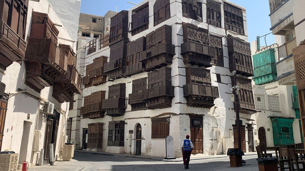 تتميز بيوت البلد بطرازها الفريد المبني من الحجر المرجاني المستخرج من البحر الأحمر، والمزين بشرفات “الرواشن” الخشبية التي أبدع الحرفيون في تصميمها، هذه العمارة التقليدية لم تكن جمالية فحسب، بل عملية أيضًا، إذ ساعدت على تهوية المنازل وحفظ الخصوصية، ورغم أن الحي شهد فترات من الإهمال مع توسع جدة الحديثة، إلا أن تسجيله ضمن قائمة التراث العالمي لليونسكو عام 2014 شكّل نقطة تحول نحو ترميمه وإحيائه.