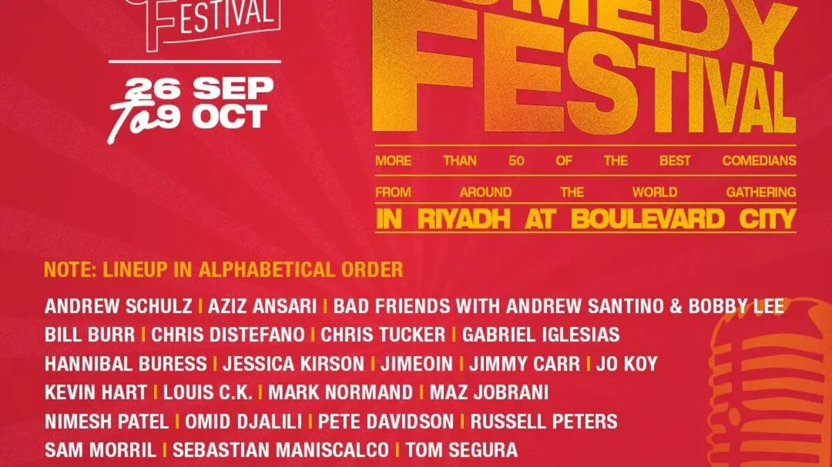 انطلقت الاستعدادات لمهرجان الرياض للكوميديا 2025، المقرر إقامته من 26 سبتمبر حتى 9 أكتوبر، وسط إقبال جماهيري ضخم جعله على وشك أن يُسجّل نفاد التذاكر بالكامل، ويُعتبر هذا المهرجان الأضخم من نوعه عالميًا، حيث يضم أكثر من 50 كوميديًا دوليًا ليقدموا عروضًا متنوعة تشمل الستاند أب كوميدي، الاسكتشات الساخرة، الساتير، والعروض الارتجالية.